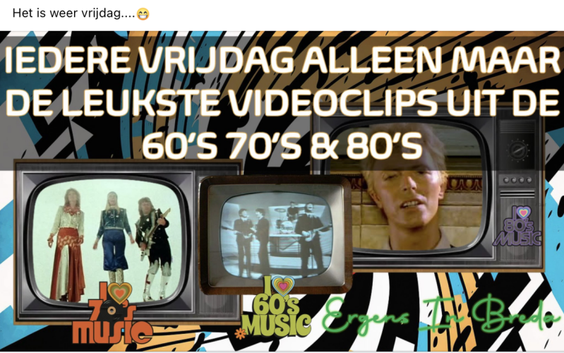 Vrijdag alleen maar clips uit de 60's, 70's en 80's